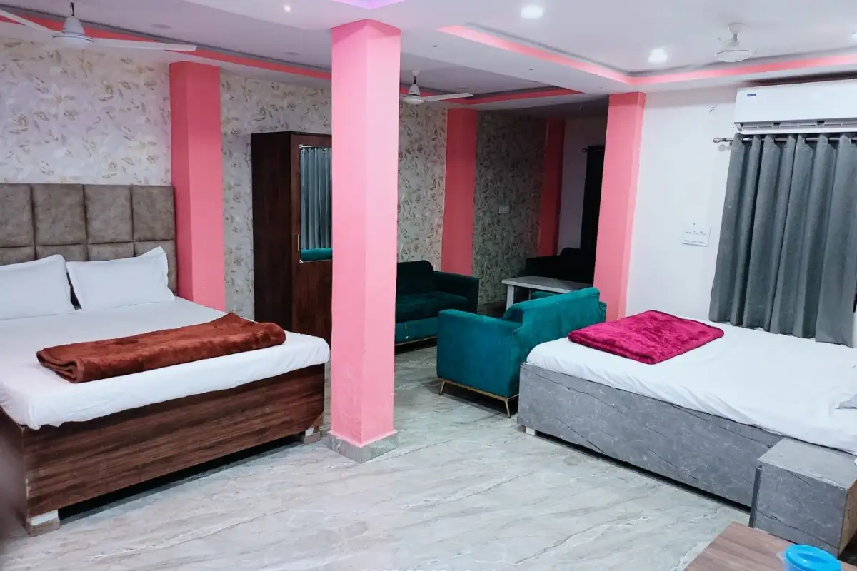 The property offers three different types of rooms, including 2 Bed AC, 2 Bed Non-AC, and 4 Bed AC.